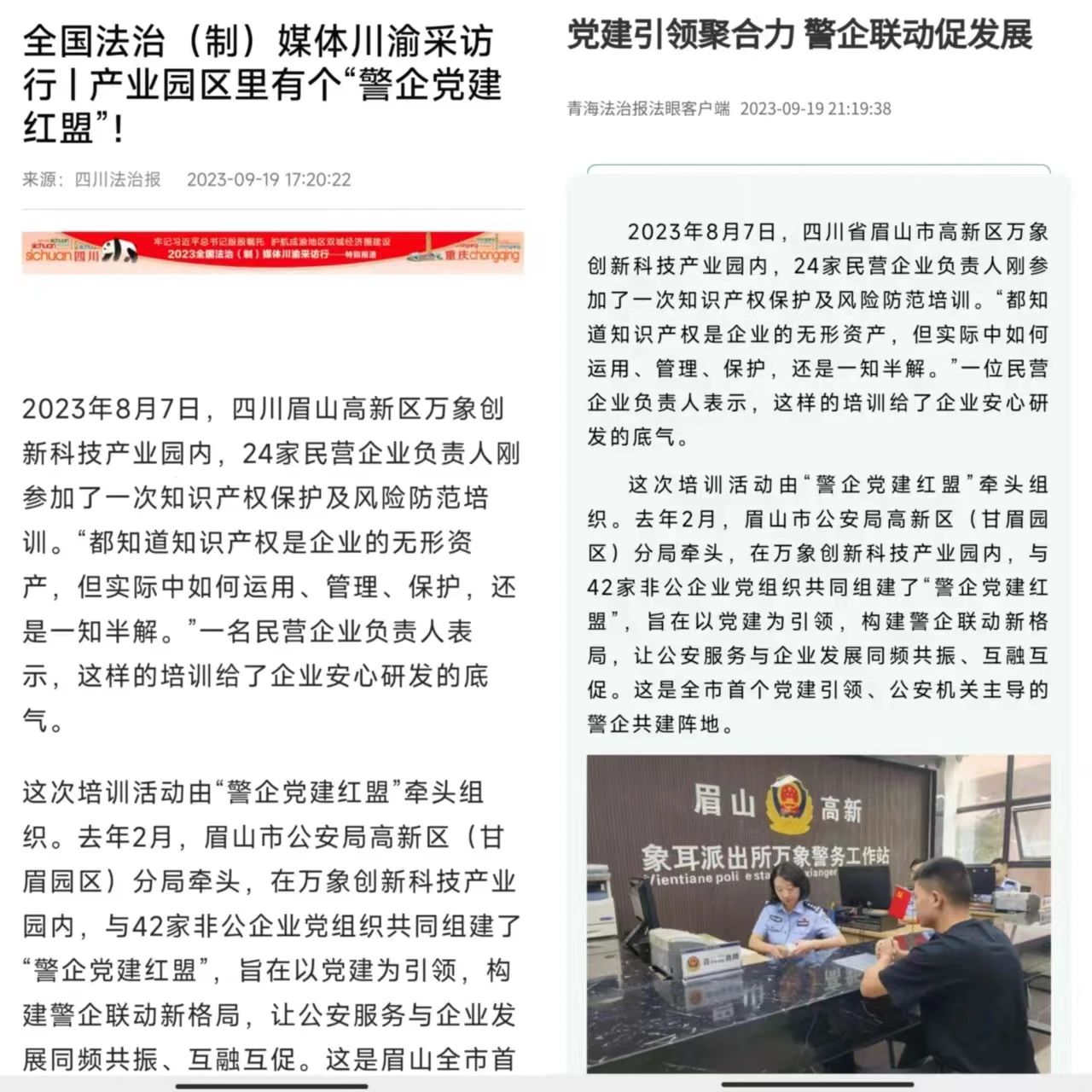 成立“警企党建红盟”,推行“项目警官”、实现“一企一警”,紧密对接企业安全和发展需求,联建创新“公安护航企业、企业参与治理”的双向支撑工作模式……2022年2月,眉山市公安局高新区(甘眉园区)分局牵头,在万象创新科技产业园内,与42家非公企业党组织共同组建了“警企党建红盟”,这成为全市首个党建引领、公安机关主导的警企共建阵地。